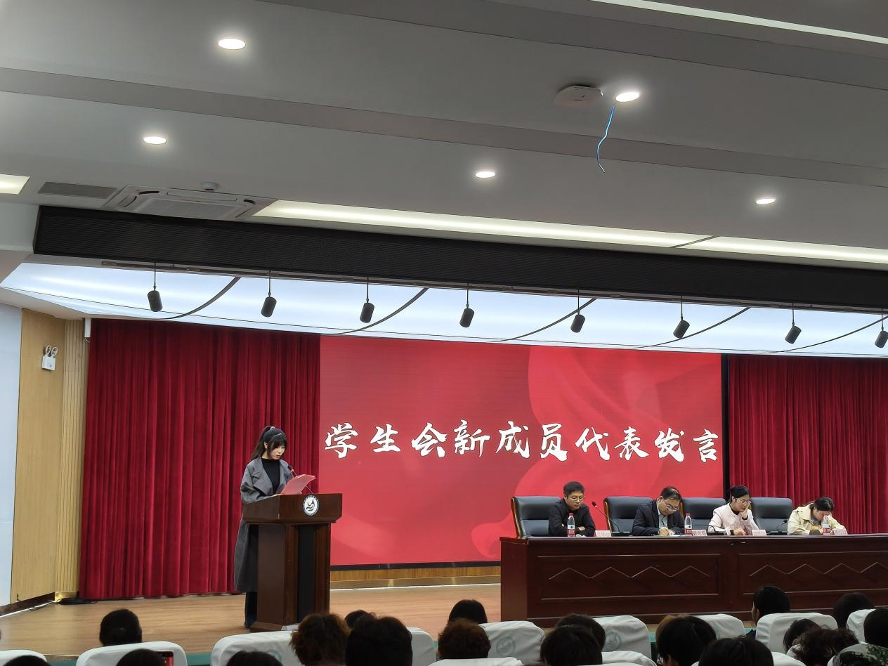 25级动医3班纪梦茹同学作为新成员代表发言,她表达了加入学生会的荣幸与激动,并承诺将以身作则,严格遵守规章制度,以积极饱满的态度投入各项工作。