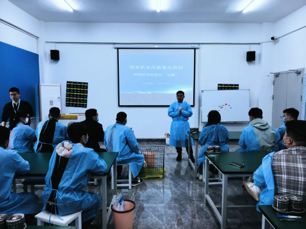 专业群教师团队结合动物检疫检验员(五级)职业技能要求,依据《动物检疫检验员国家职业技能标准》,采用“理论+实操”相结合的培训模式,实现技能培训与岗位需求精准衔接。