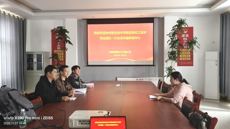 近日,在东至县科技局、东至化工园的悉心指导与大力支持下,池州职业技术学院生物与健康系应用化工技术专业教师团队一行赴东至化工园区,与安徽三禾化学科技有限公司、安徽德隆泰化工有限公司围绕池州市级产学研研发中心共建事宜展开深度磋商,最终达成共识并正式签署共建协议。这一举措搭建起校企资源共享、优势互补的合作桥梁,成为我系推进 “双高” 建设、落实 “双对接” 机制的重要实践成果。