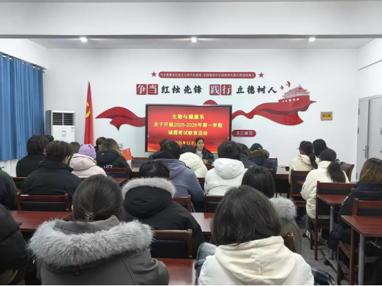 为严肃考风考纪,强化学生诚信应考意识,保障期末考试工作规范有序开展,12 月 23 日晚,我系召开 2025-2026 学年第一学期诚信考试教育专题会议。会议由系副主任曾叶纯主持,大一、大二各班班委参加会议。